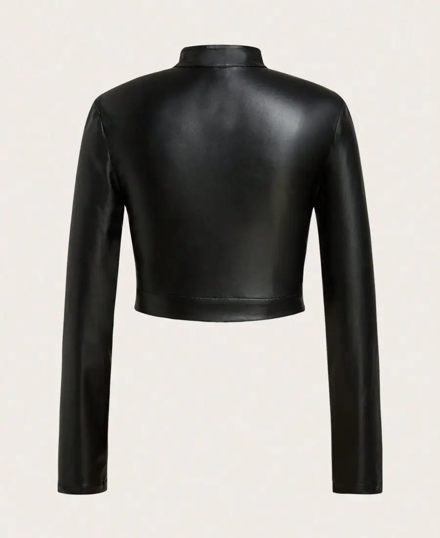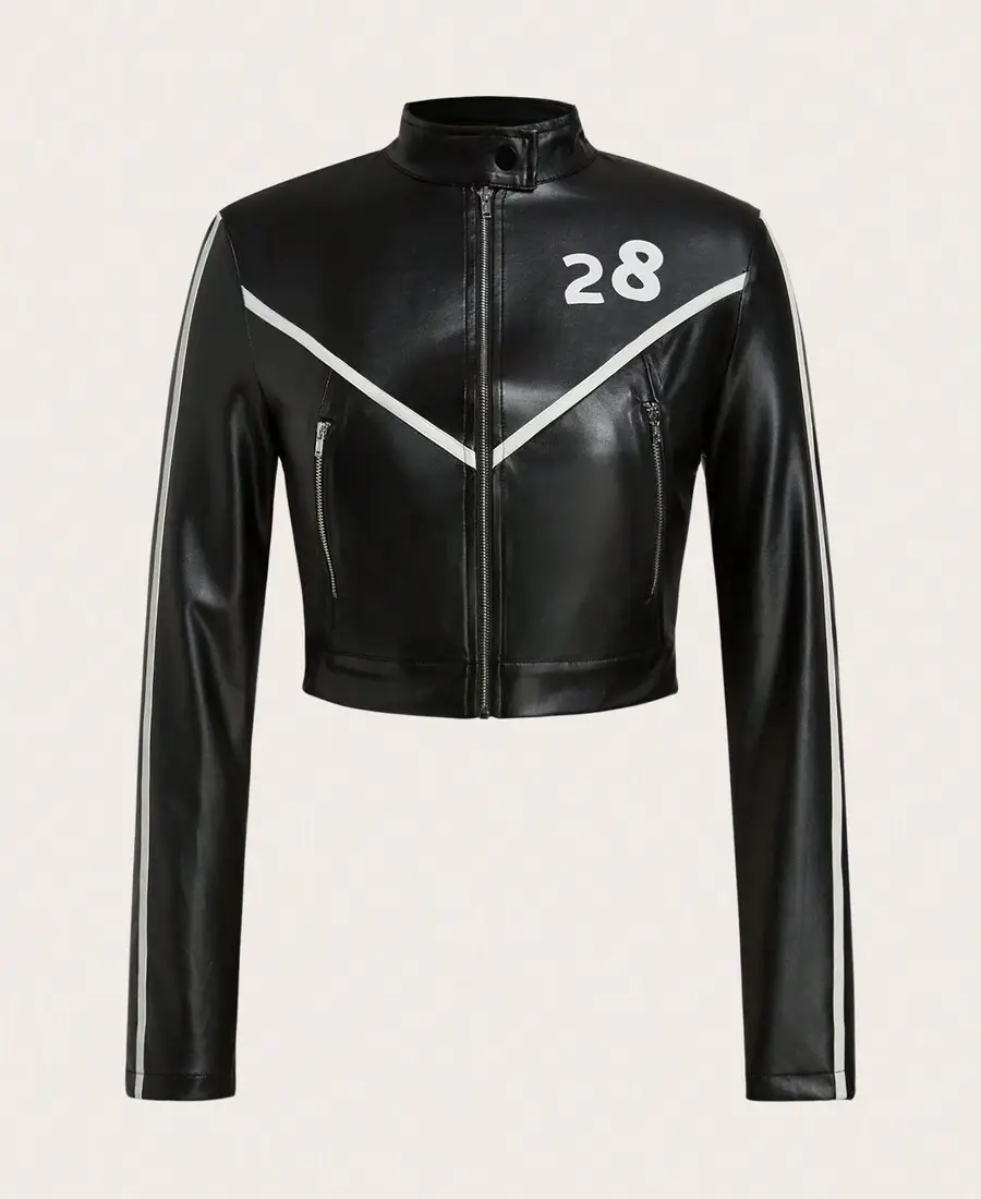 Women’s Icon Bikercore Piping PU Crop Leather Jacket