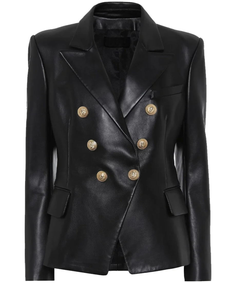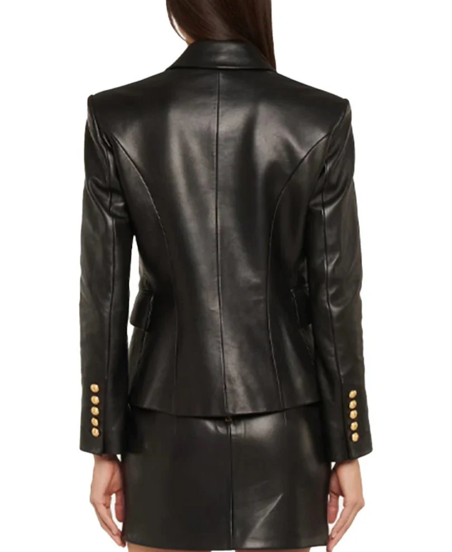 Shop The Women’s Kim Double Breasted Black Leather Blazer