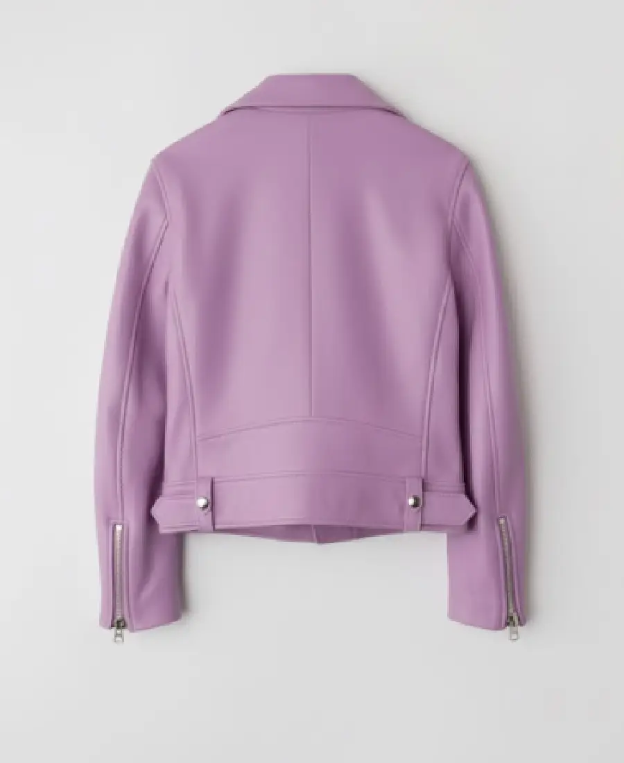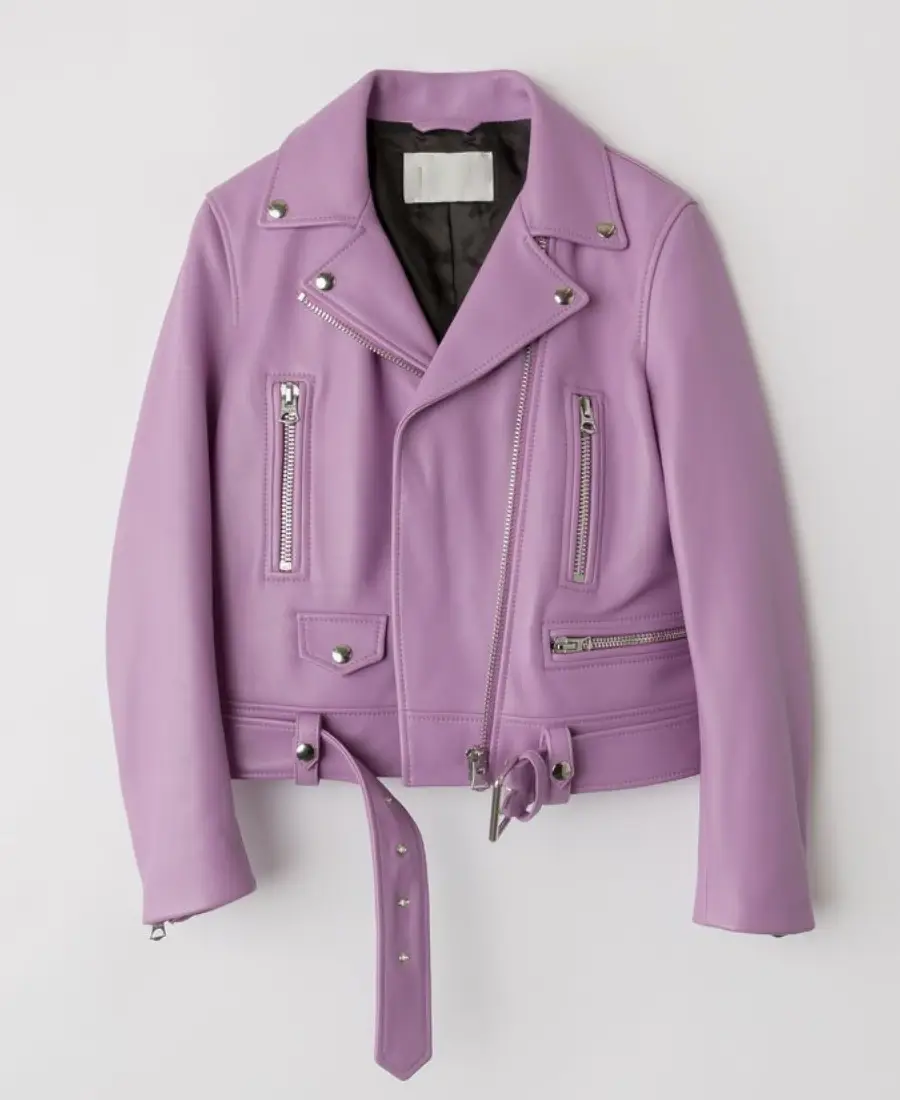 Women’s Light Pink Lapel Style Leather Jacket