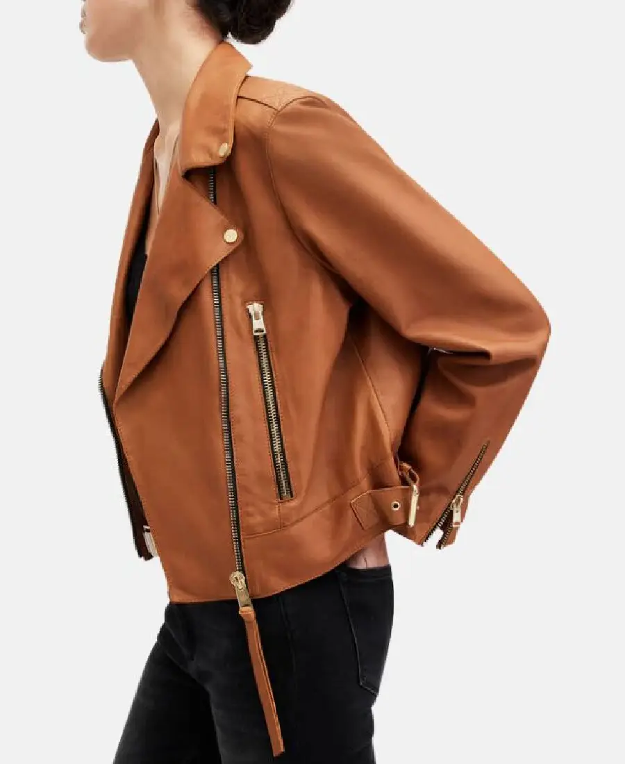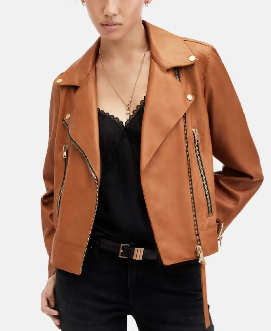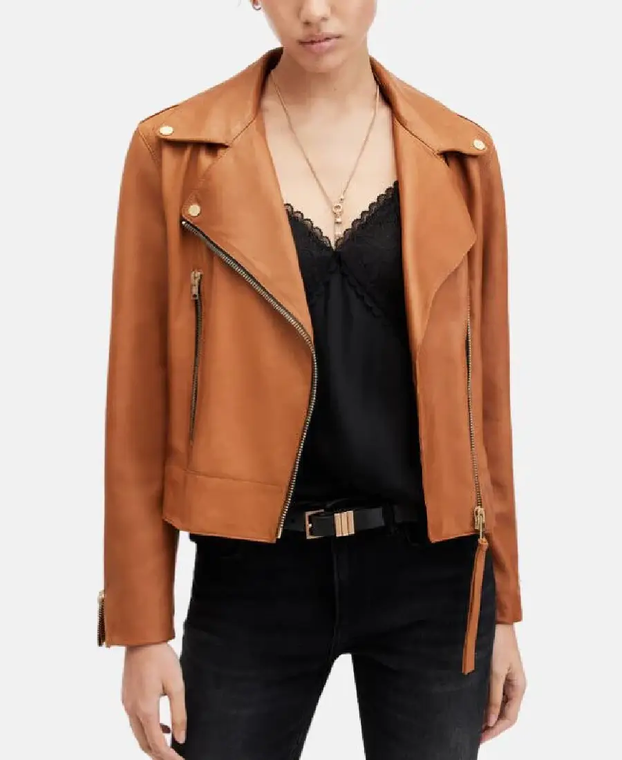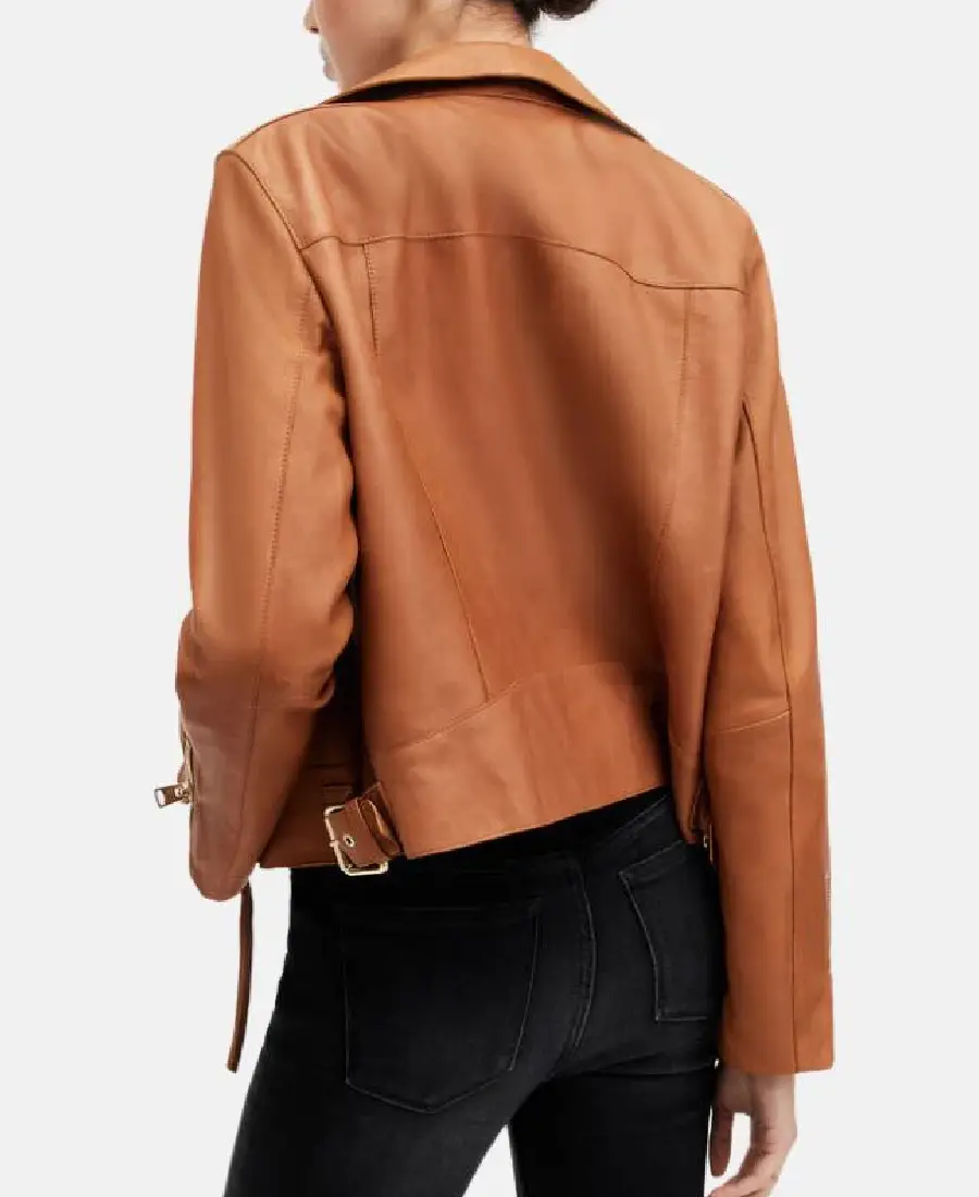 Shop The Women’s Mustard Brown Biker Leather Jacket