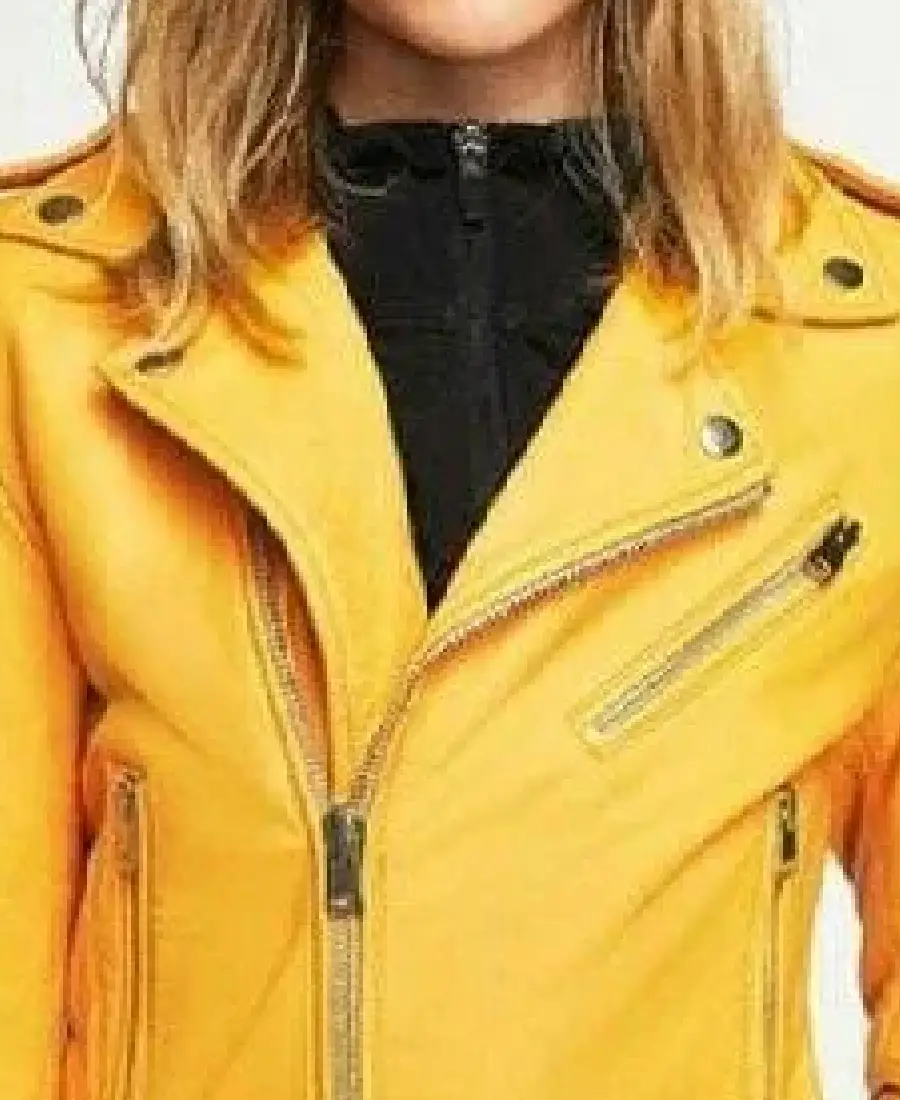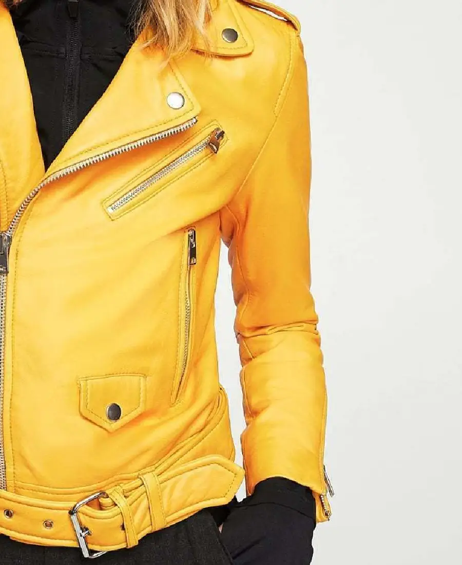 Women’s Noora Genuine Yellow Moto Leather Jacket