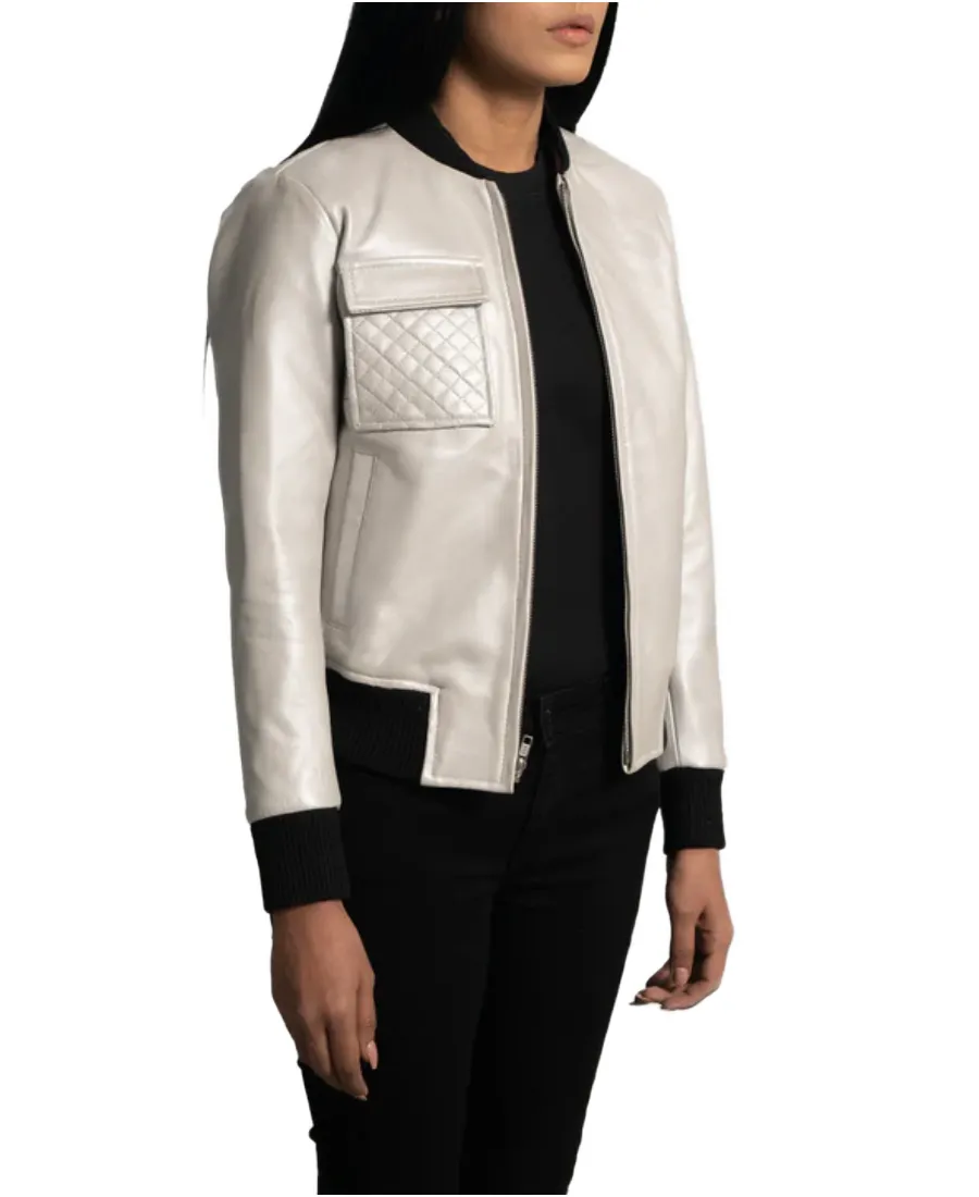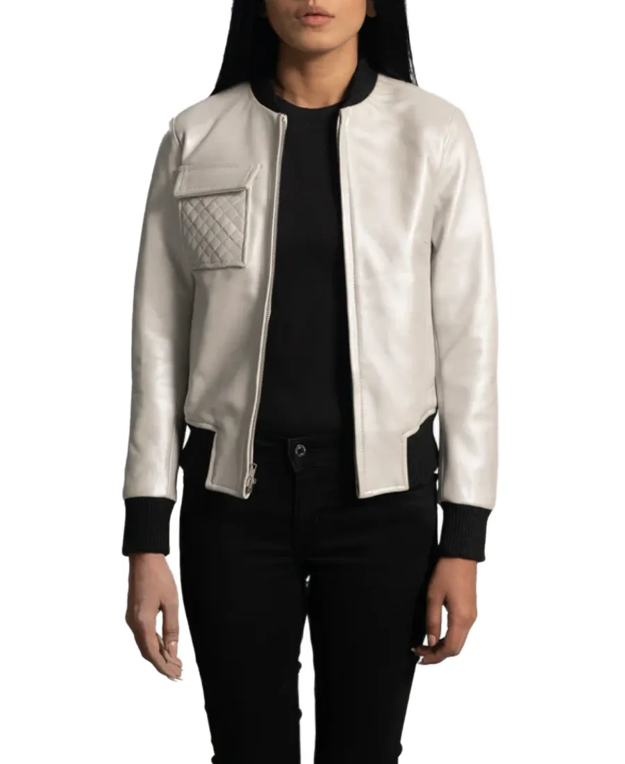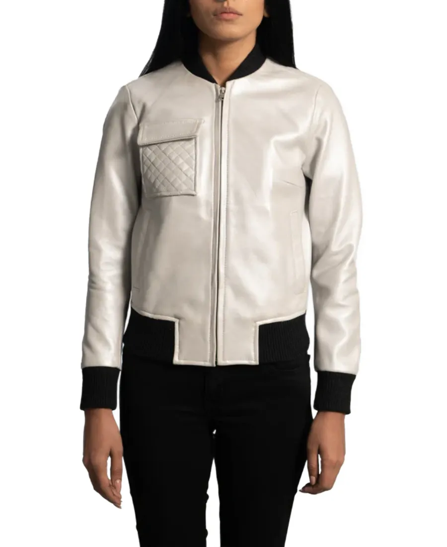 Women’s Off White Leather Bomber Jacket