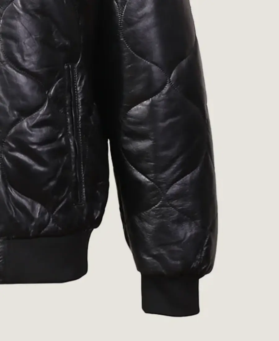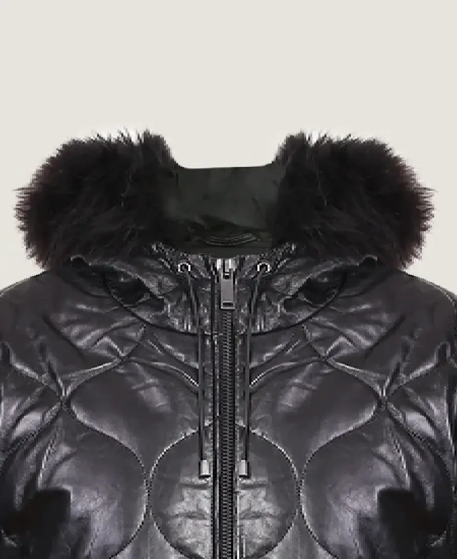 Women’s Puffer Black Leather Jacket