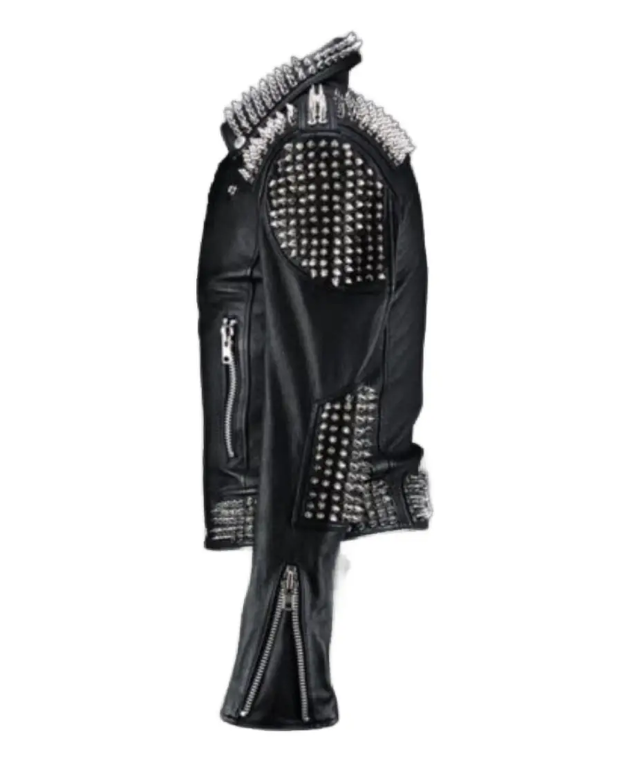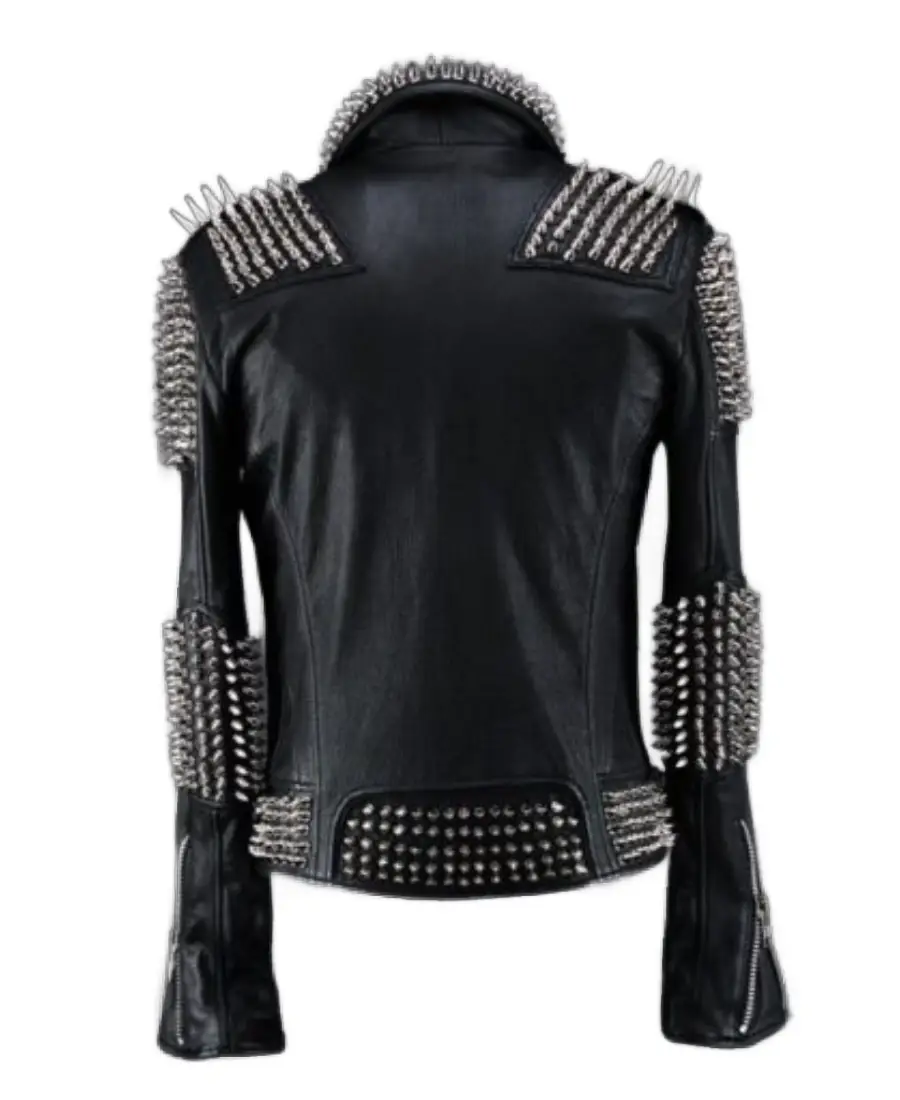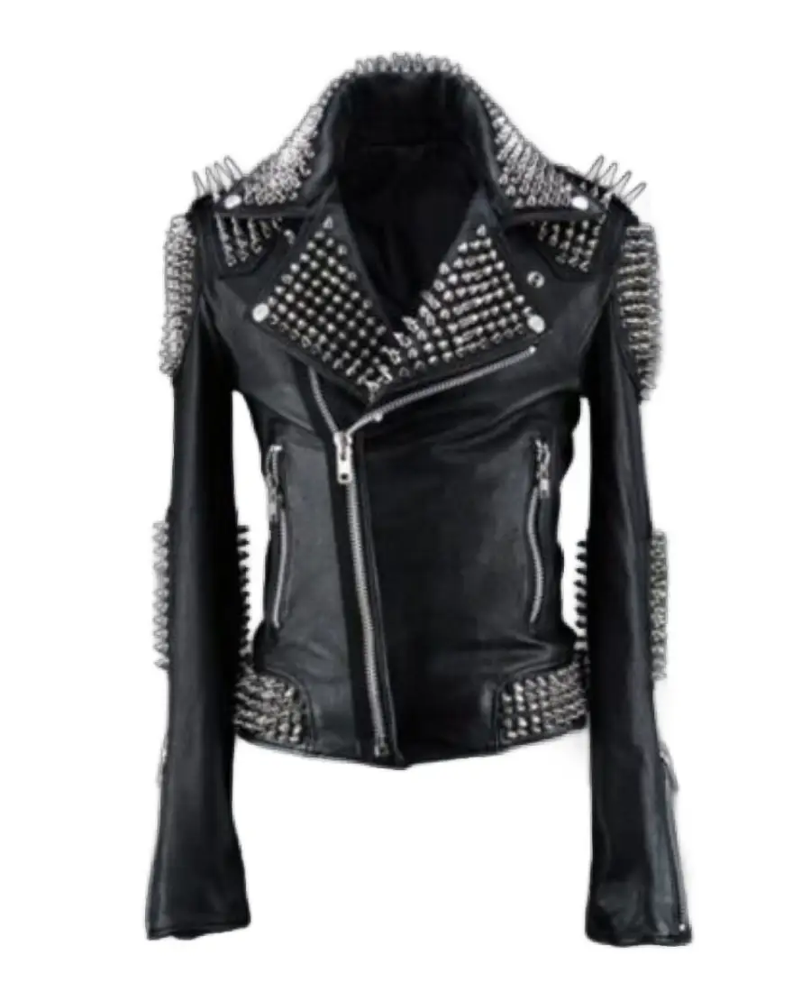 Shop The Women’s Punk Silver Spiked Studded Moto Leather Jacket