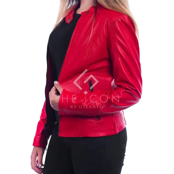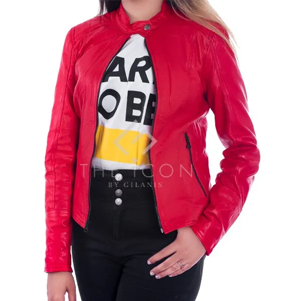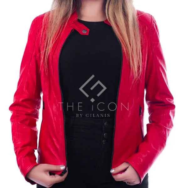 Women’s Red Biker Leather Jacket