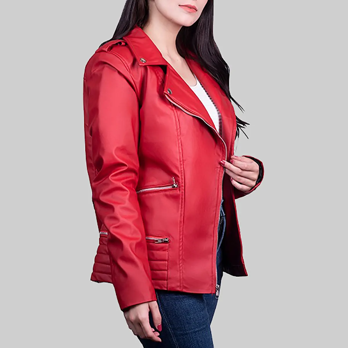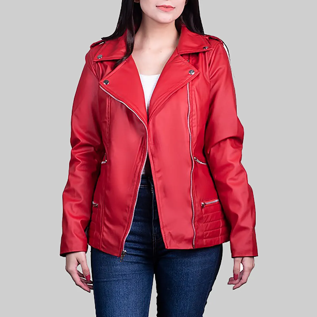 Women’s Red Leather Biker Jacket