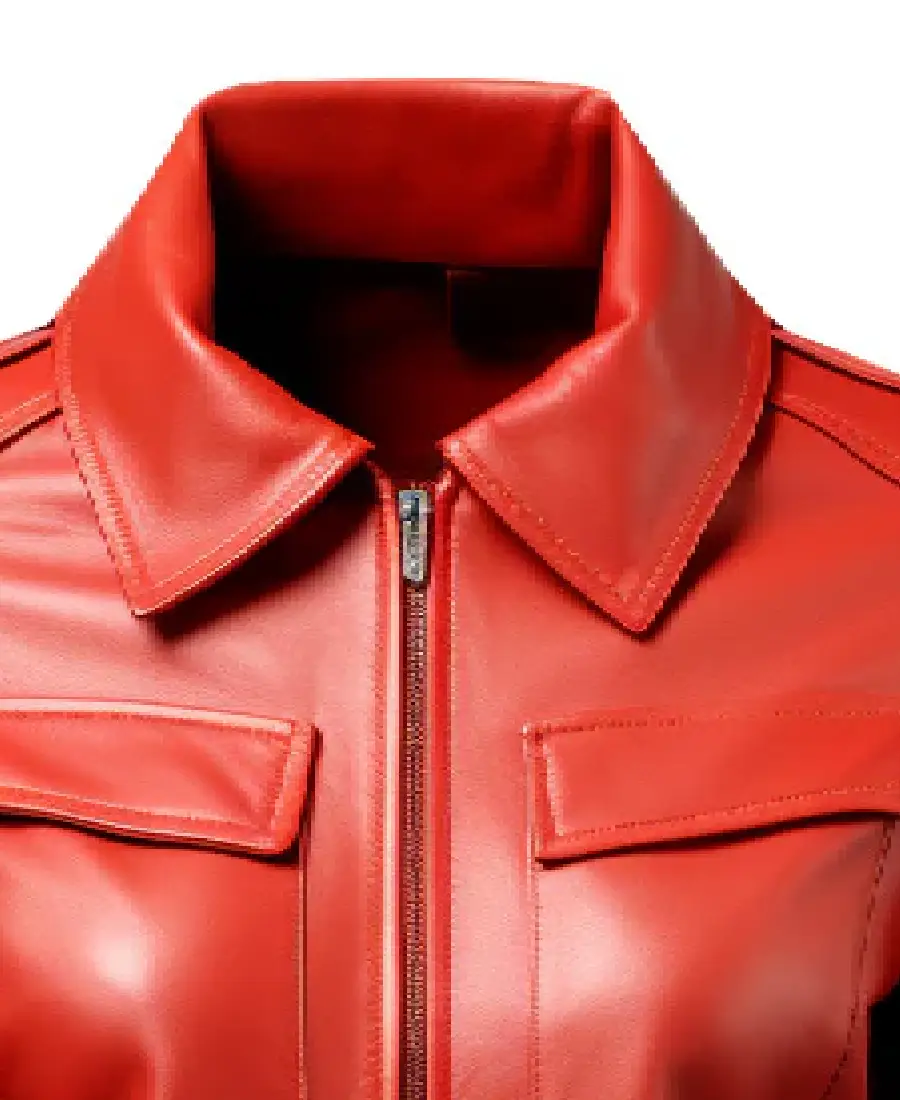 Women’s Shirt Style Red Leather Bomber Jacket