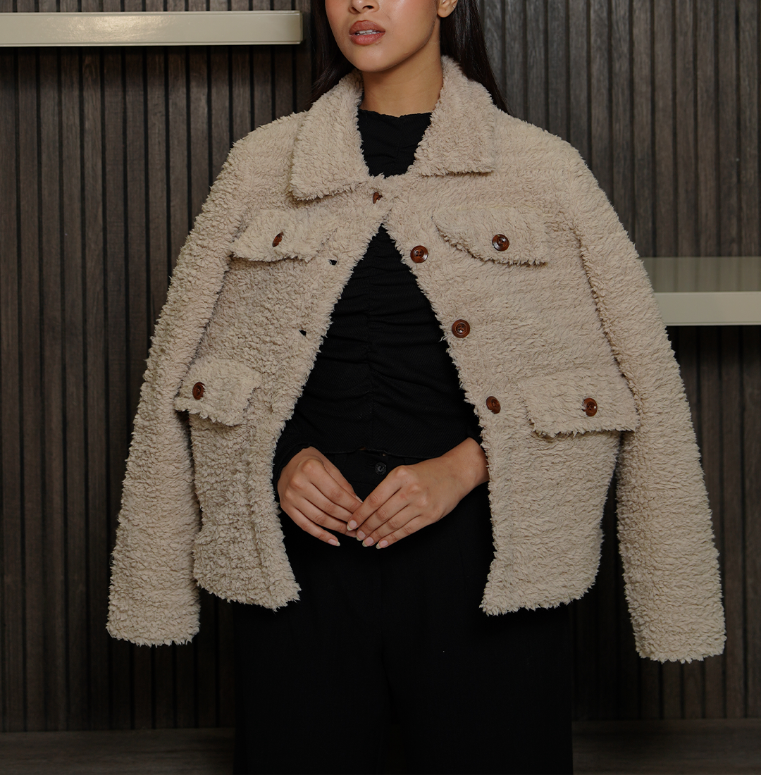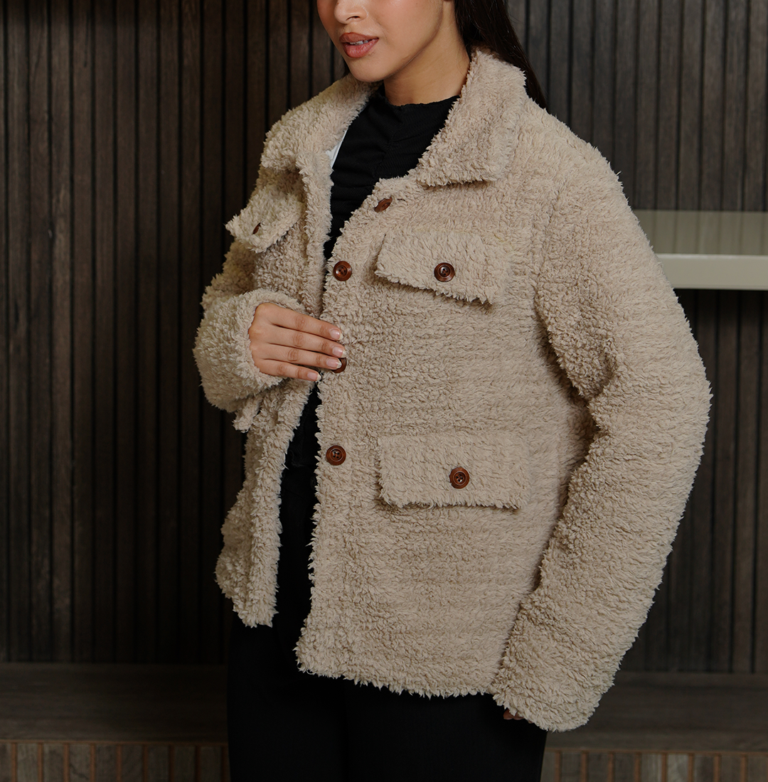 Beyond its eye-catching design, this jacket is crafted for maximum warmth and everyday durability. It features high-quality faux Sherpa material that provides excellent insulation against the wind, while the smooth viscose lining on the inside offers a soft and breathable feel against your skin. The jacket comes with a reliable front button closure and a stylish Sherpa collar for extra protection during chilly days. With four spacious flap pockets, you have plenty of room to keep your phone, wallet, and other essentials safe and within reach. Finished with open hem cuffs and full-length sleeves for a relaxed fit, this jacket is a reliable and fashionable investment that will stay a favorite in your collection for many seasons.