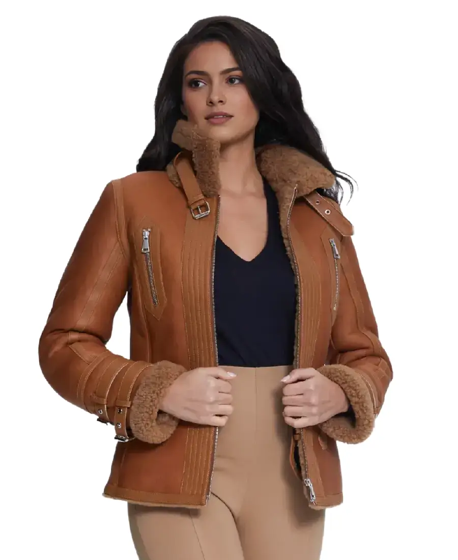 Shop The Women’s Silky Brick Brown Shearling Jacket