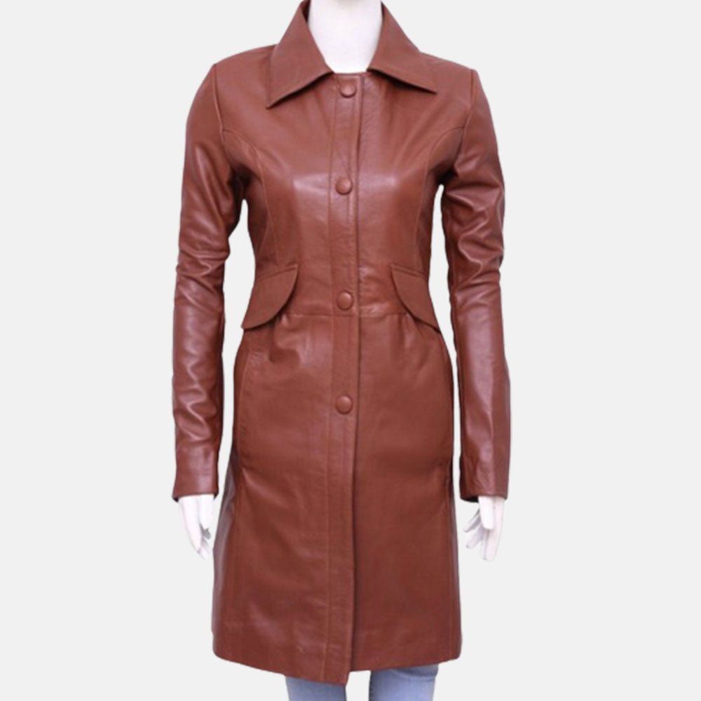 Women’s Solid Brown Leather Coat