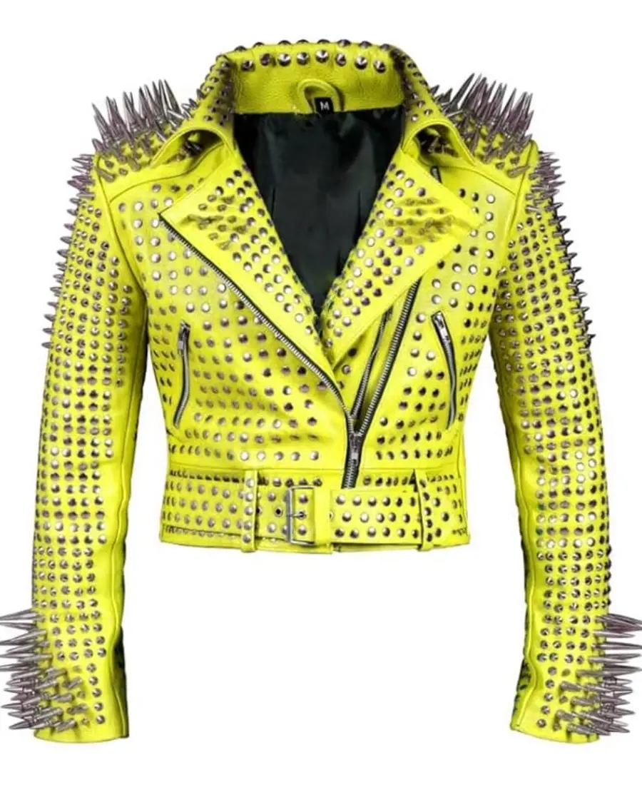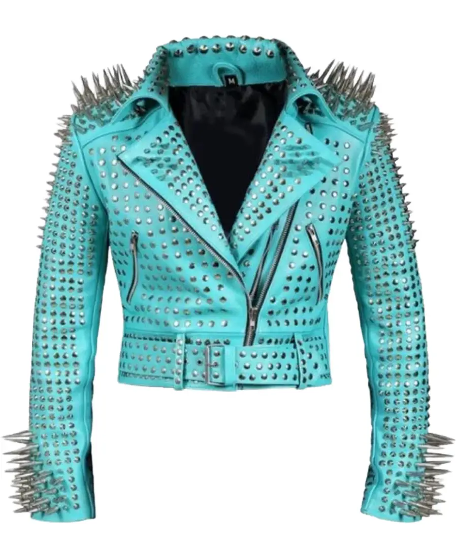Shop The Women’s Studs Zippered Spiked Biker Leather Jacket