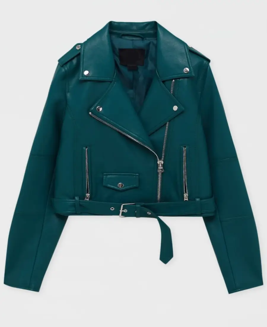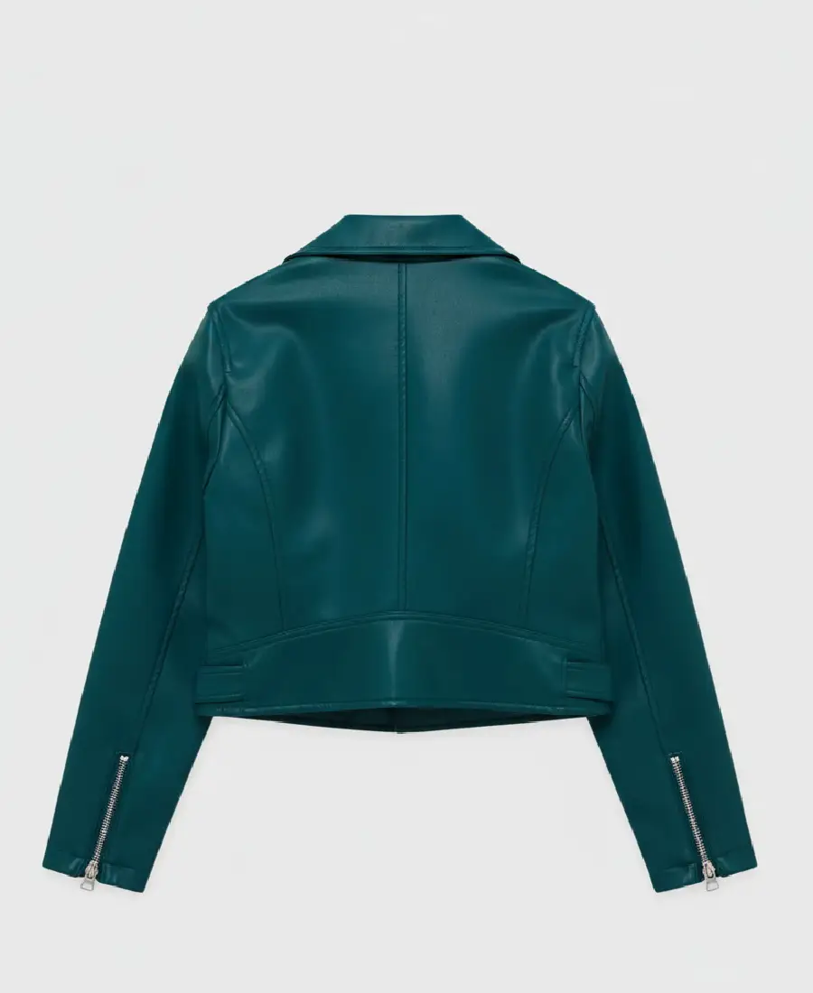 Shop The Women’s Teal Lapel Style Leather Jacket