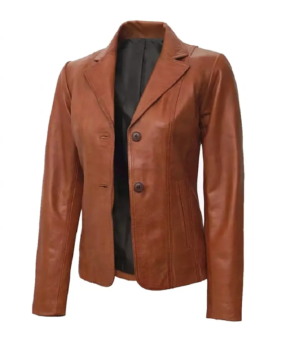 Women’s Two Button Brown Leather Blazer