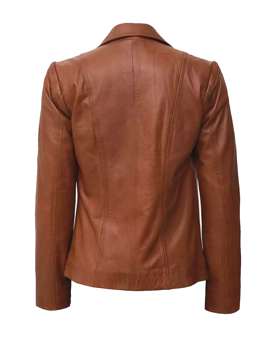 Women’s Two Button Tan Leather Blazer