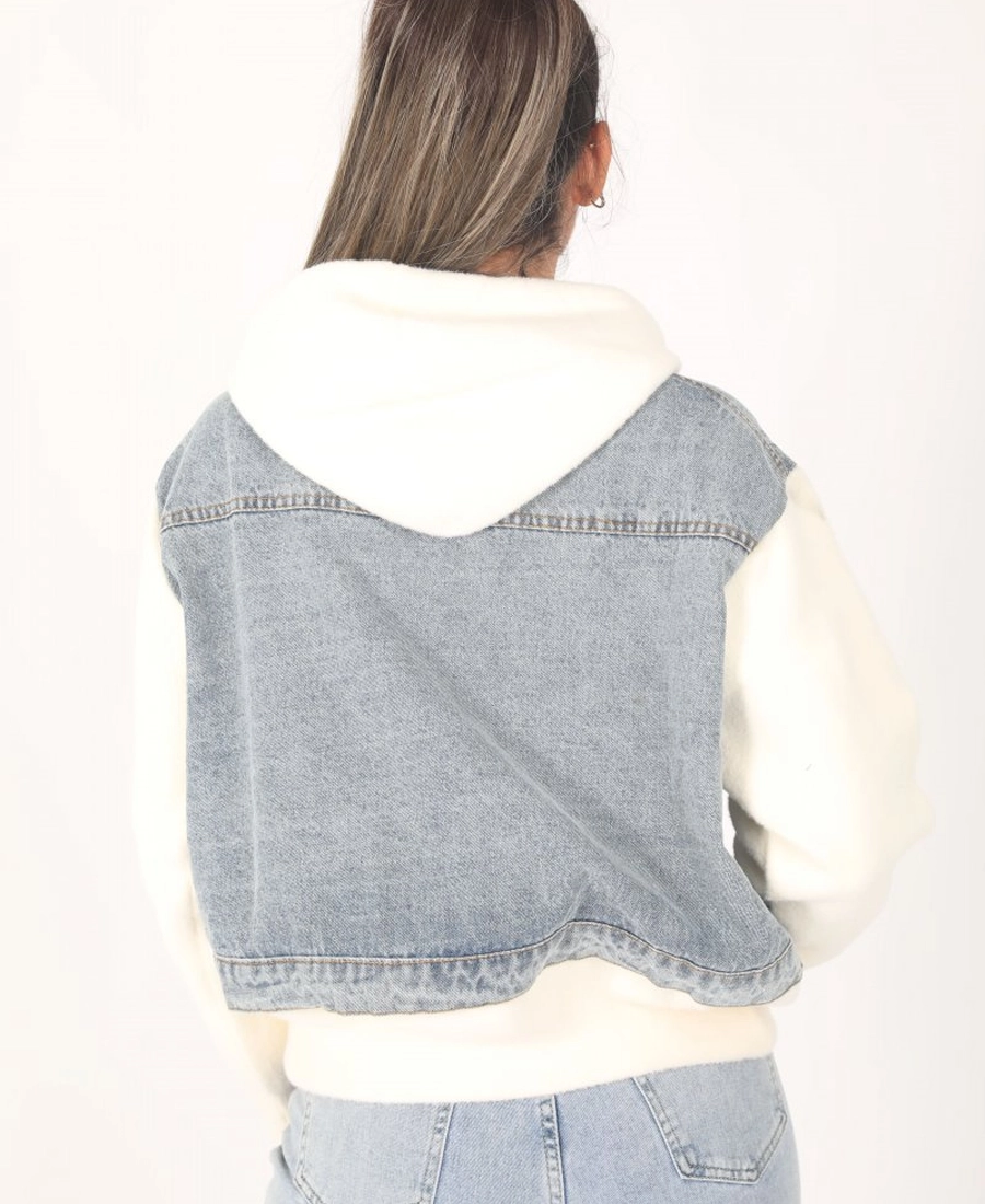 Women’s White Ligth Blue Hooded Denim jacket