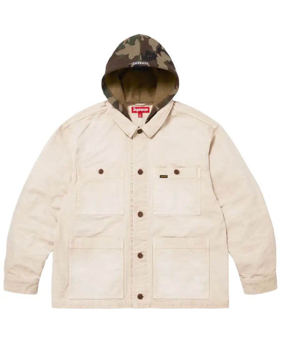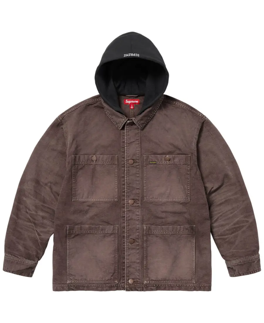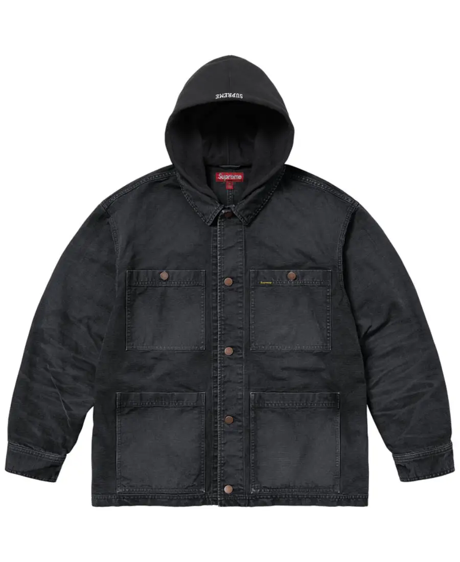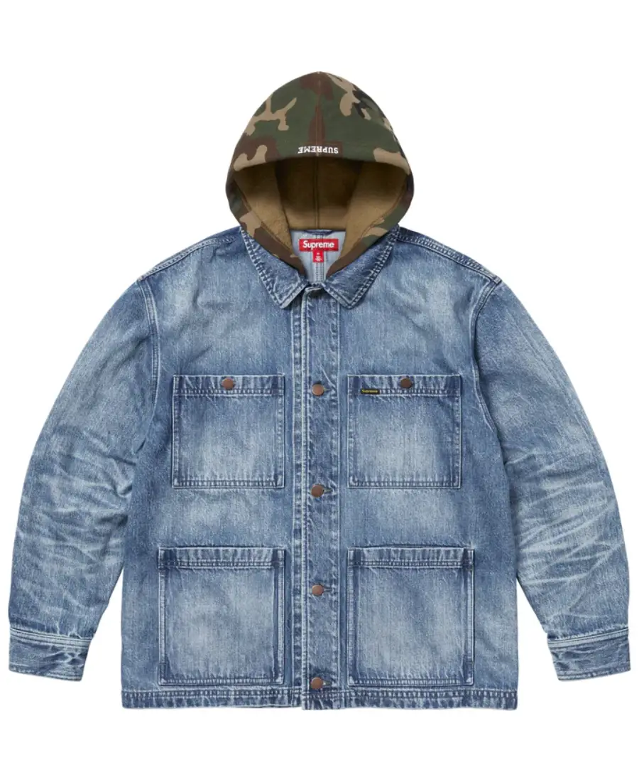 Worn Hooded Chore Denim Coat