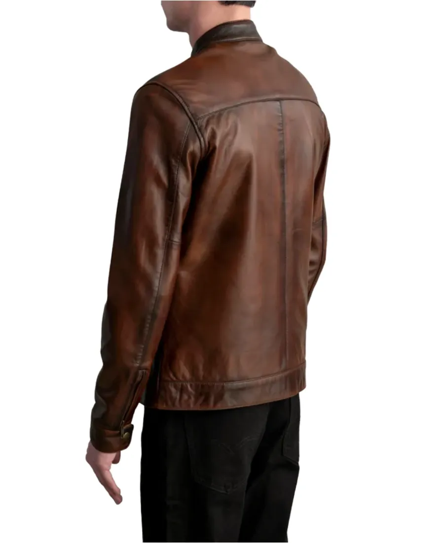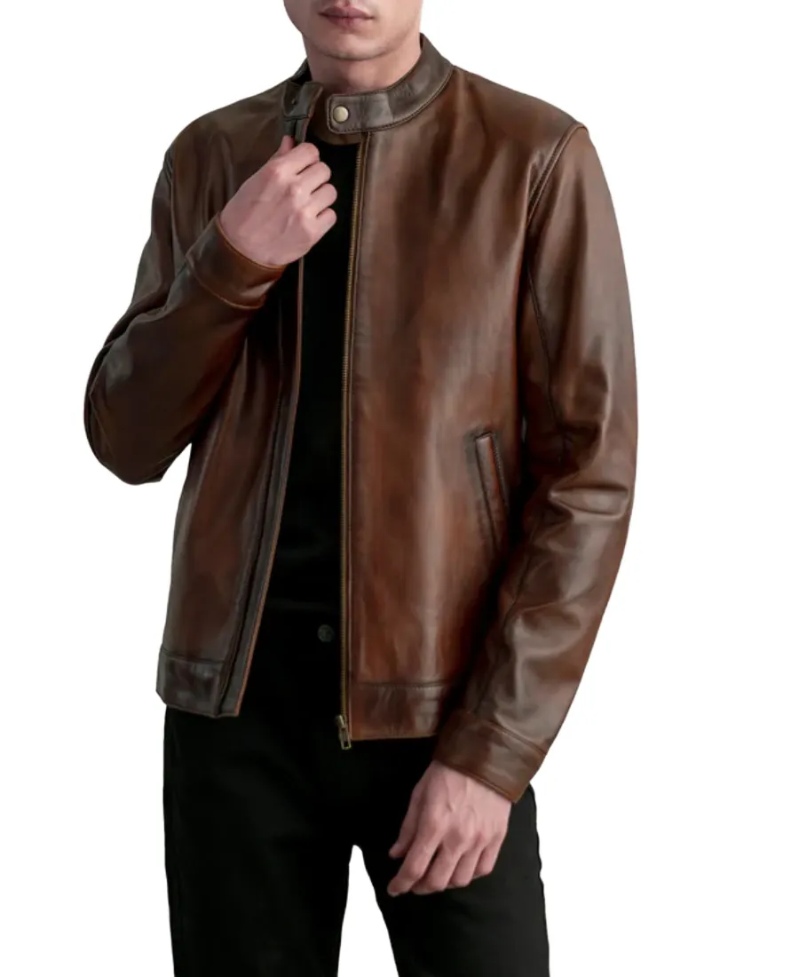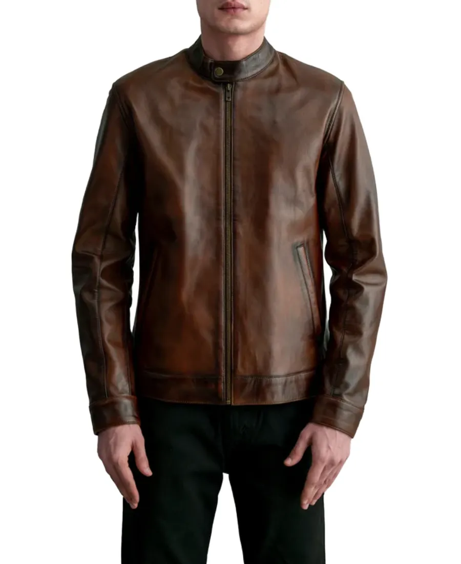 Zen Distressed Brown Leather Biker Jacket